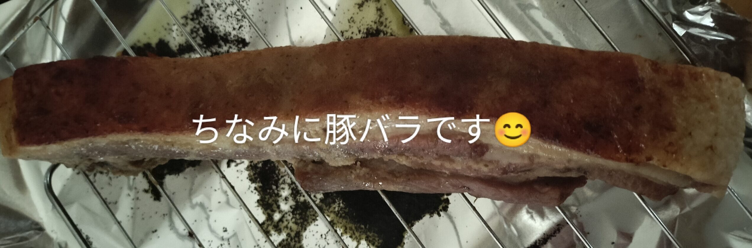 3日後にオーブンで160℃で45分 トレーに銀紙(アルミホイル)を敷いて紅茶などを敷いて天板式の上にお肉をのせて焼きます。